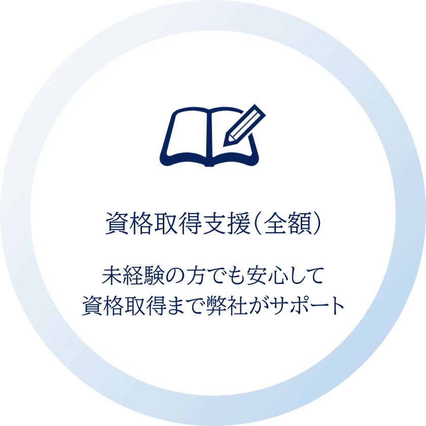 また、資格取得支援(全額)サポートいたしますので安心して一緒に成長していきましょう。 -